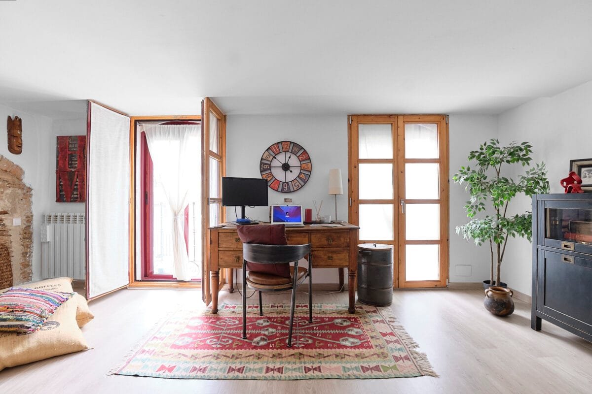 Escritorio en el salón ideal para teletrabajar